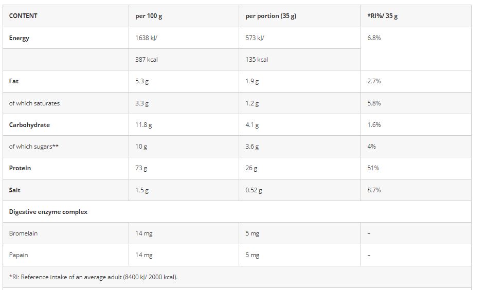 - يحتوي على إنزيمات هضمية لتحسين امتصاص البروتين.