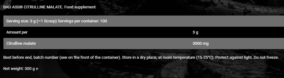 Bad Ass Citrulline Malate هو مكمل ما قبل التمرين المثالي لكل رياضي يسعى للتميز وزيادة الأداء بدون منبهات أو إضافات ضارة.