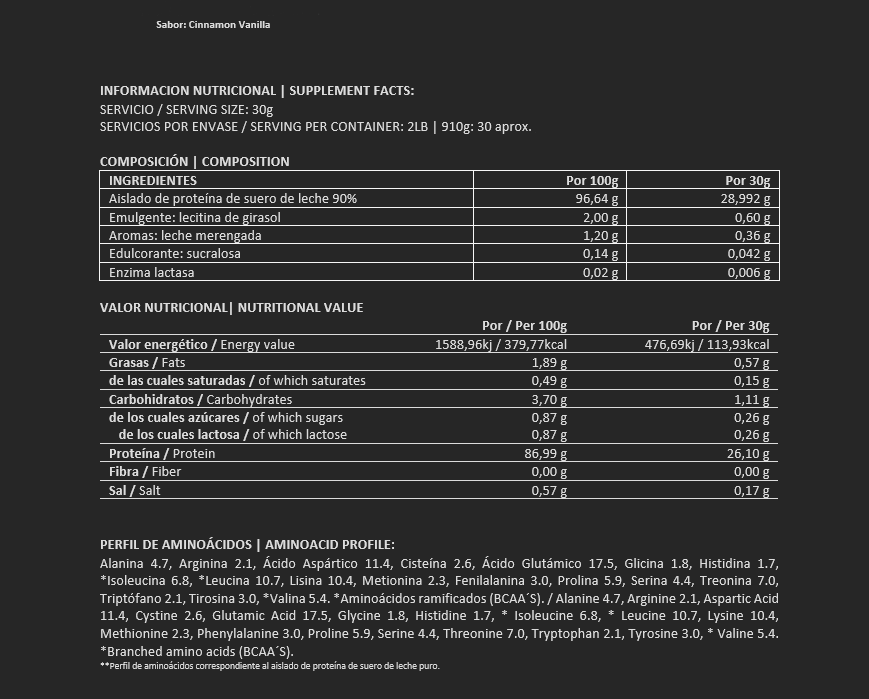 - 90% بروتين معزول من مصل اللبن: يوفر لك جرعة عالية من الأحماض الأمينية الأساسية اللازمة لبناء العضلات وإصلاحها.