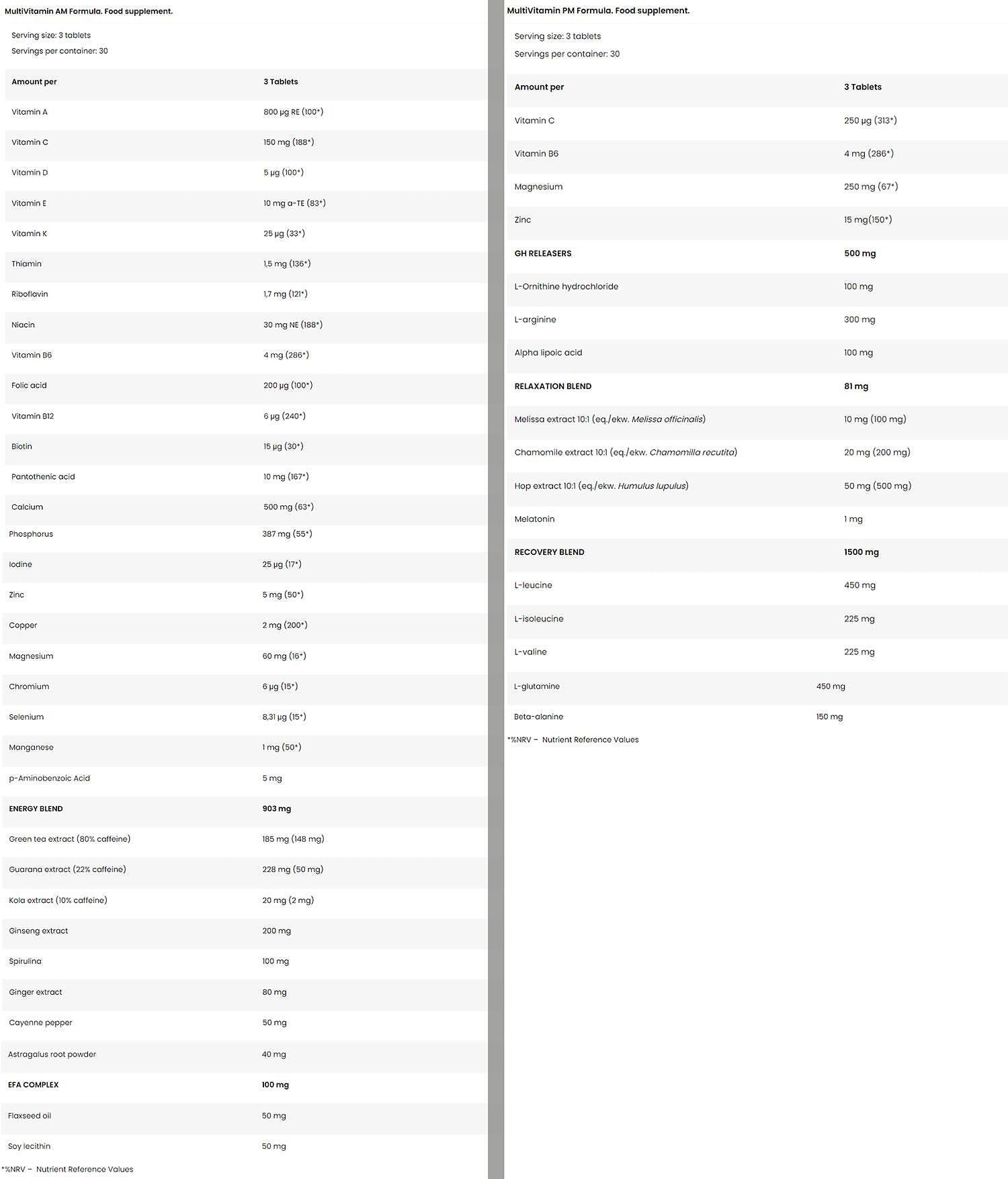 - تركيبة AM و PM مُخصصة لدعم طاقتك نهارًا وتعزيز نومك ليلاً.