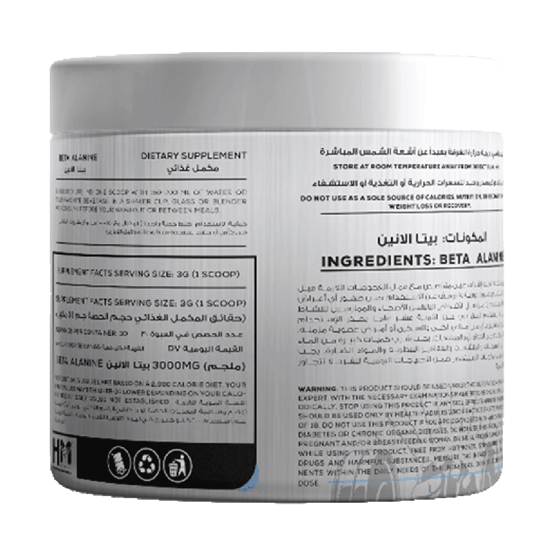 - جرعة واحدة (1سكوب) تحتوي على 3 جرام من البيتا ألانين.